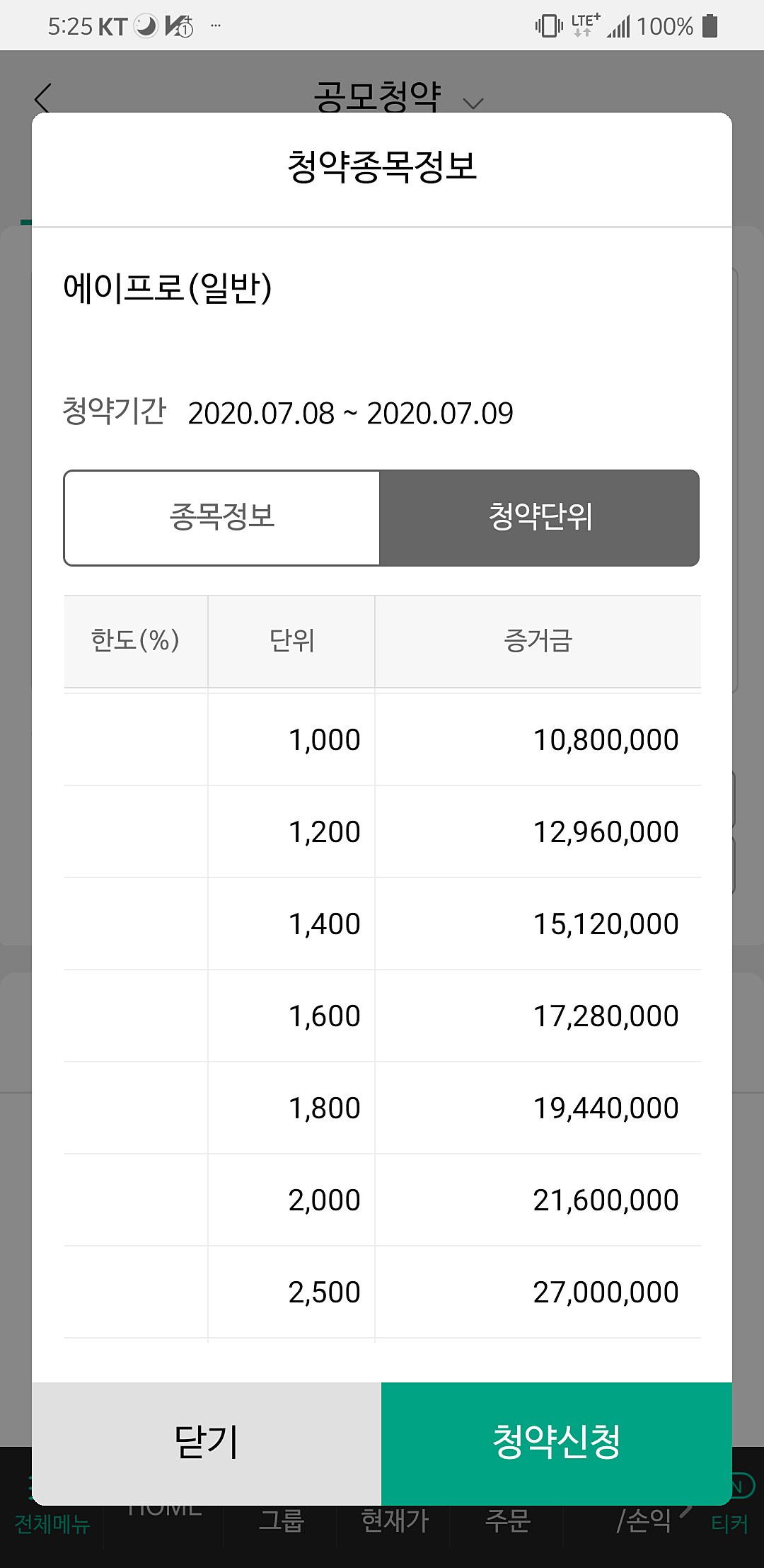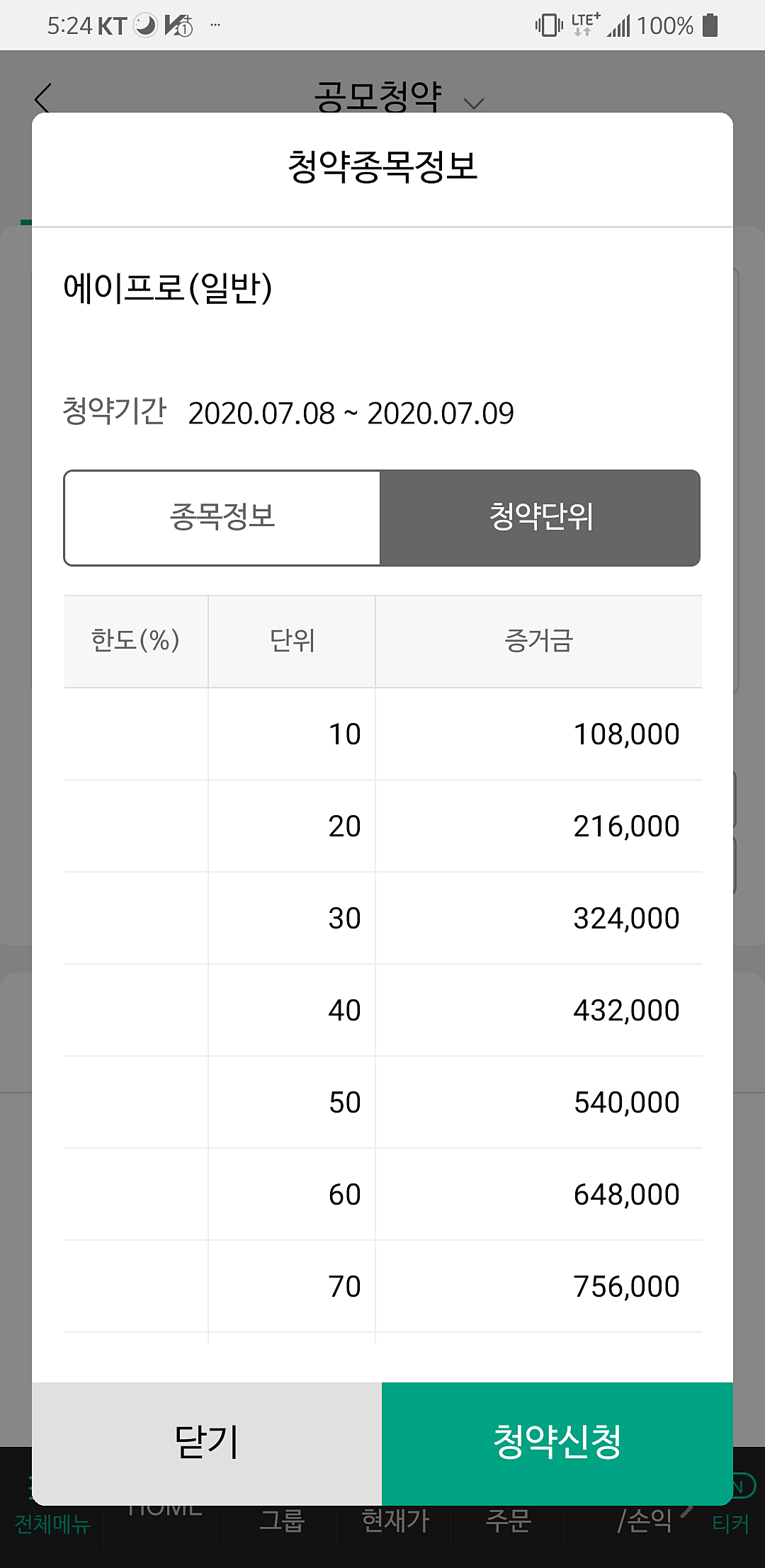 청약단위는 10주부터 10개씩 증가하는데요. 최소 증거금은 108000원 입니다. 그렇다고 108000원을 넣었다고 10개를 받는건 아니에요. 경쟁률에 따라서 배당받을 수 있는게 다르기 때문에 앞서 공모주(IPO) 청약 내용 한번 참고해 보시길 바래요.