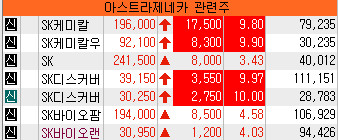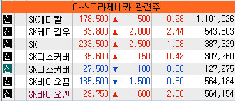 SK바이오사이언스 관련해서 동반 상승한 종목들을 살펴보면 SK케미칼, SK디스커버리, SK, SK바이오팜, SK바이오랜드가 있어요. 우선주들도 있는 종목들이 있어요. 이 중에서 SK케미칼과 SK디스커버리는 시간외에서 상한가로 마감하였는데요. SK케미칼은 최대주주라서 그렇다 치지만 디스커버리는 AZD1222 글로벌 공급을 위한 3자간 협력의향서를 체결할때 함께 있어서 동반상승한걸로 보입니다.