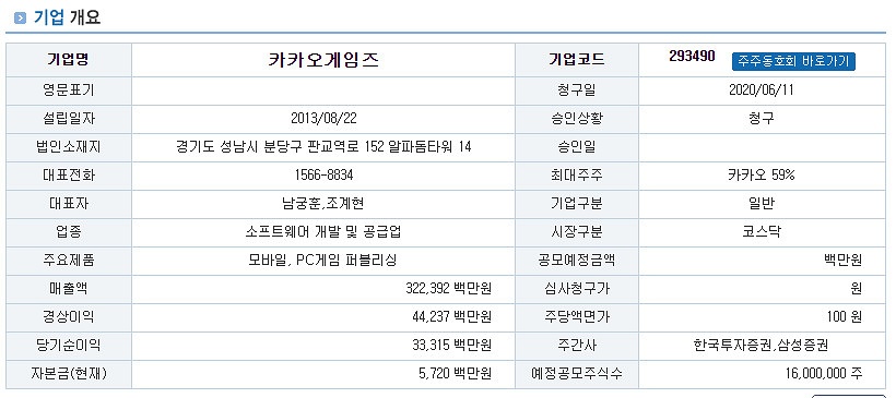 카카오게임즈는 코스닥 상장 예비심사를 승인받았다고 하는데요. 우량 기업을 대상으로 상장 심사 절차를 간소하 하는 예비심사 패스트트랙제도를 적용 받았기 때문에 관심이 더 몰릴듯 합니다. 현재 상장 예정일은 9~10월 중으로 보고 있습니다. 아마 멀지 않은 시점에 청약 공모가 나오고 코스닥 상장하지 않을까 싶네요.
