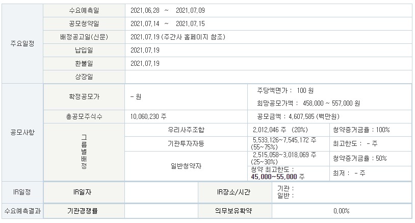 - 공모청약일 : 2021.07.14 ~ 2021.07.15