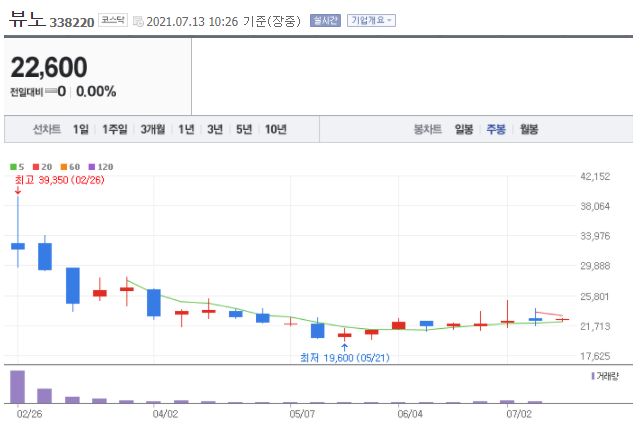 상장일 최저가 및 최고가 : 29650원 / 39350원