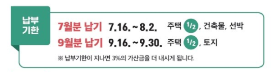 7월분 납기 : 7월16일 ~ 8월 2일 (주택 1/2, 건축물, 선박)