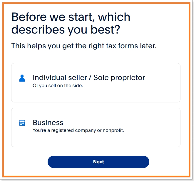 4. 비지니스 타입을 설정해주시면 되고 개인 판매자 또는 법인 중 선택하시면 됩니다.