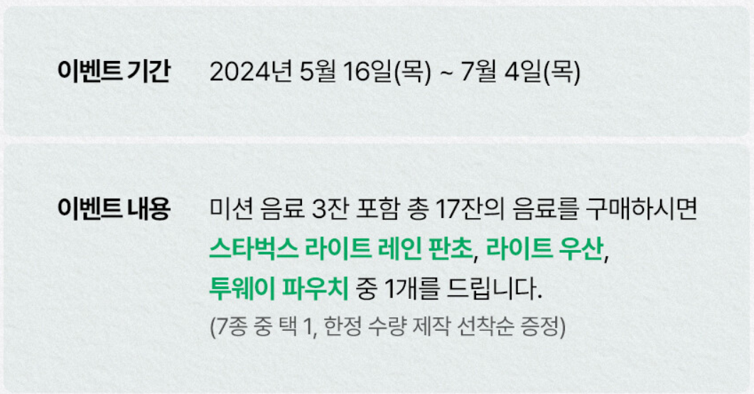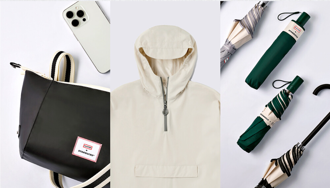 2024년 섬머 시즌에는 헌터와 함께 콜라보를 하여 우산, 우의, 클러치백 중 선택하여 굿즈를 얻을 수 있습니다. 개인적으로 이번 콜라보는 성공적인 느낌이고 우의나 우산 모두 끌리는 감성템인듯 합니다.