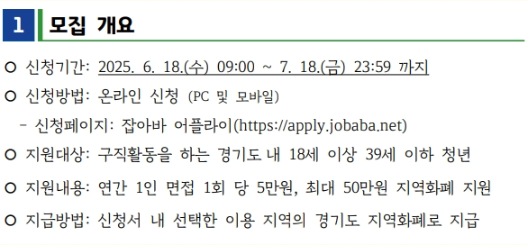 - 지원대상 : 구직활동을 하는 경기도 내 거주하는 18세 ~ 39세 이하 청년